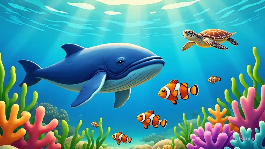 One of the most amazing ocean creatures is the blue whale. It can grow up to 100 feet long and weigh as much as 200 tons—that’s as heavy as 33 elephants! Despite their size, blue whales eat tiny shrimp-like creatures called krill and are gentle giants of the sea.