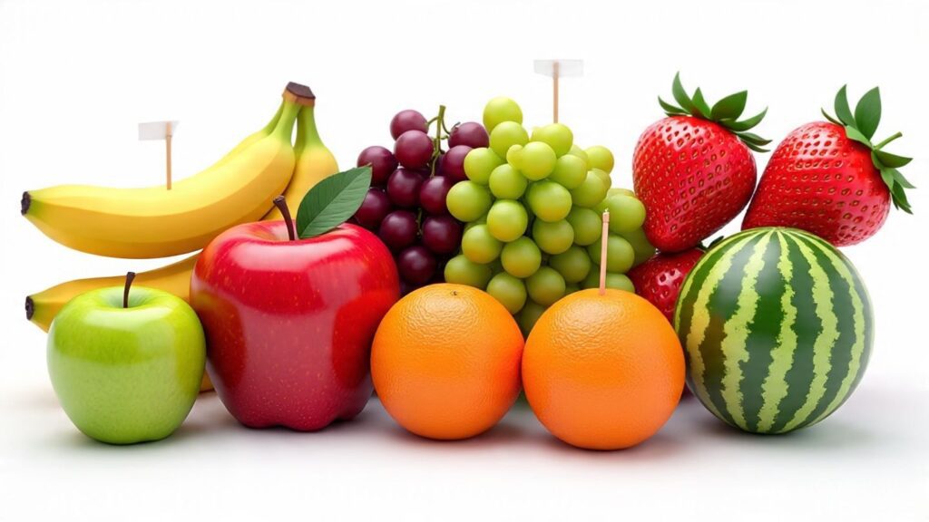 Strawberries are heart-shaped, red, and covered in tiny seeds. They’re sweet and perfect for smoothies or just eating fresh. Their bright red color is loved by kids.