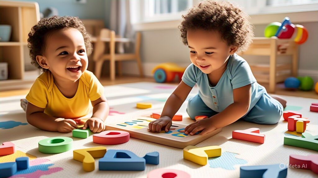 Puzzles are great for hands-on learning. Use an alphabet floor puzzle and encourage your toddler to name each letter while assembling it. This improves motor skills and letter recognition.