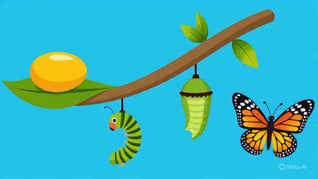 Have you ever seen a butterfly fluttering in your garden and wondered how it became so beautiful? The life of a butterfly is like magic—it goes through a special journey called a life cycle. Let’s explore how a butterfly is born and transforms through four amazing stages!